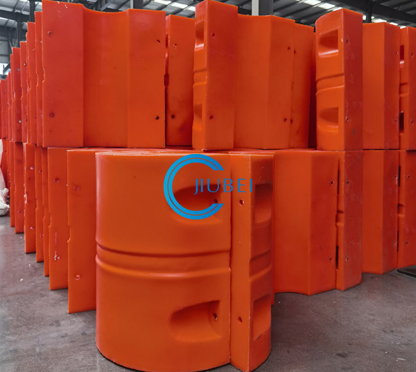 La coque des flotteurs en PE est moulée en rotation à partir de matériau en PE, remplie à l'intérieur de mousse de polyuréthane à haute densité ((la densité de mousse varie selon la condition du flotteur en tuyauterie).Les flotteurs PE sont les plus largement utilisés pour le dragage de pipelines, et du câble, il est idéal pour remplacer les pontons en acier pour le tuyau de décharge flottant.